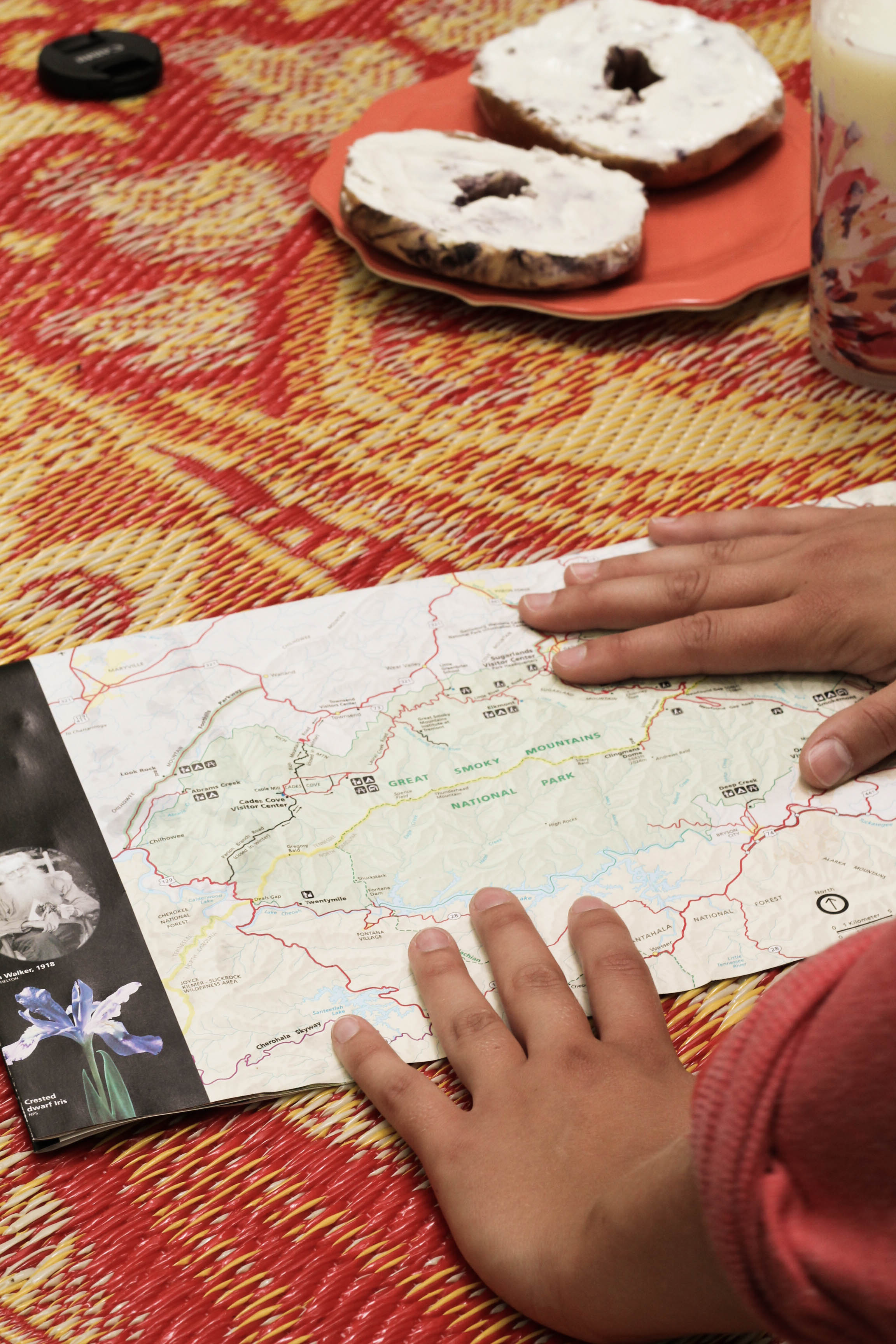 DAY 2 began with a beautiful 3-mile hike to Sutton Overlook and some fun experimentation with Melody’s new camera. Seeing the bright mossy trees and delicate sunlit foliage along the trail was breathtaking and wading through the rushing waters of a small creek on the return route was icy and refreshing. The Great Smoky Mountains were an inspiring beginning to our little adventure and instilled in us even further an excitement for the views ahead!