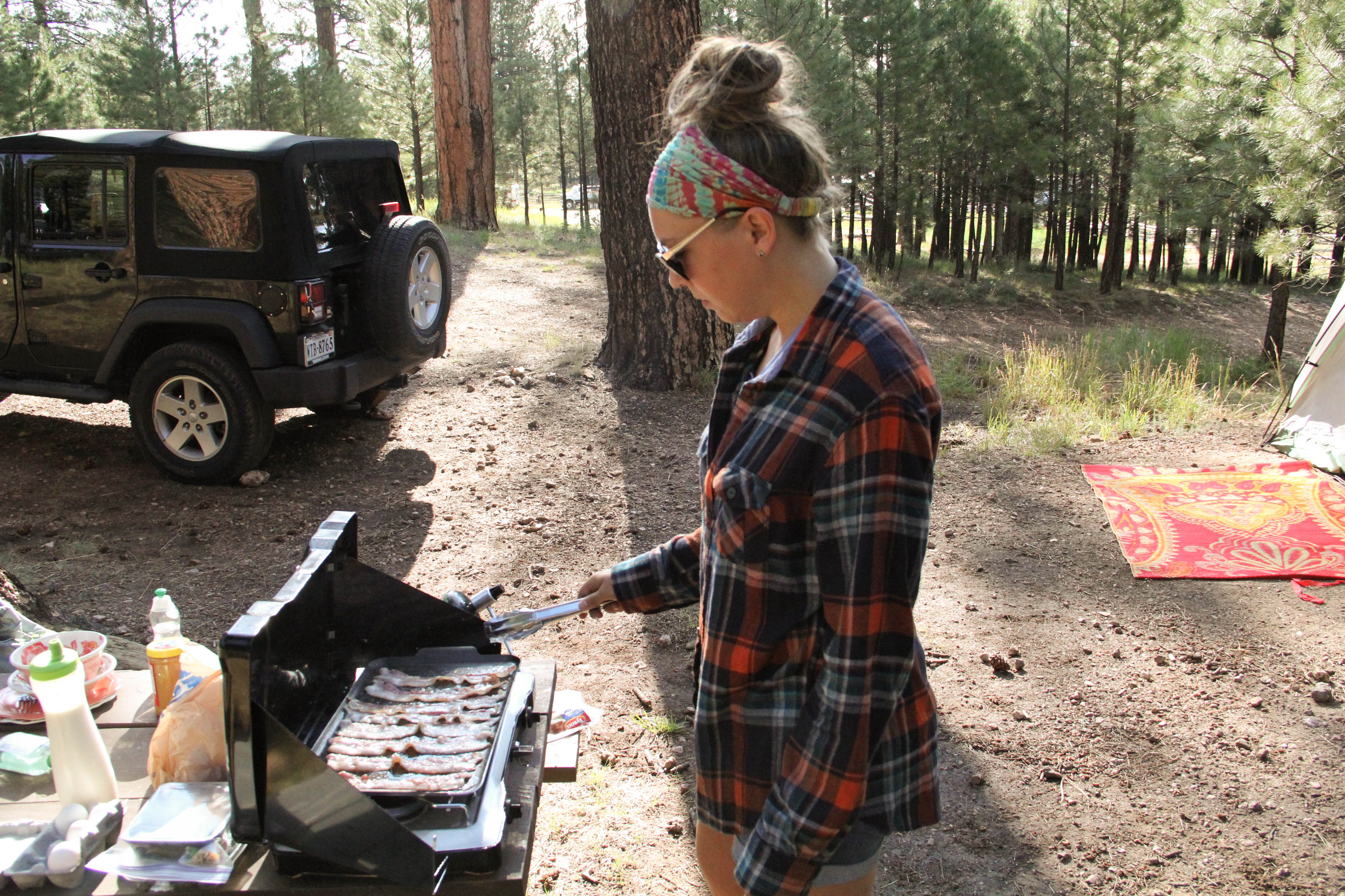 We slowly entered the mountain and wound our way into lush, surprising greenery, tall pines, and birch trees as we headed towards our campground. We set up our new home, nestled in the pines.